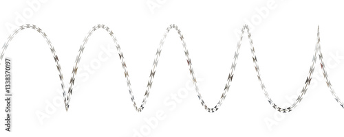 Symbolic representation of razor wire in a 3D render. Conveys themes of restriction, danger, and protection. Use for conceptual art, graphic design, or to create a strong visual statement