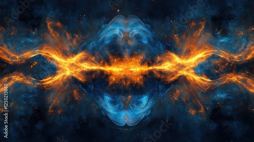Symmetrical Abstract Energy Field Orange Fire and Blue Ice Cosmic Background.