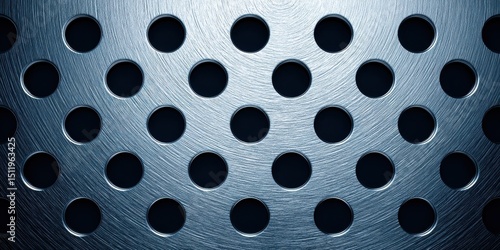 Symmetrical design of a metal plate featuring perforated holes creating a unique texture with industrial appeal and deep focus aesthetic