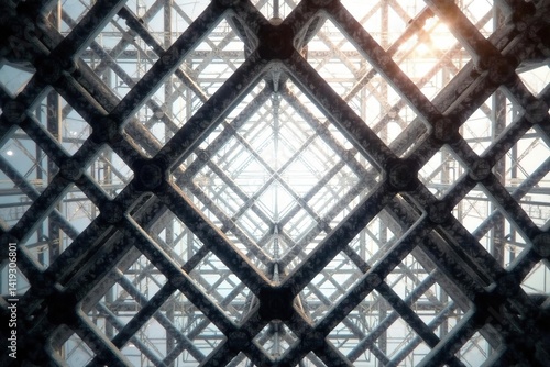 Symmetrical lattice of intersecting lines forming squares, monochrome aesthetic, seamless, grid