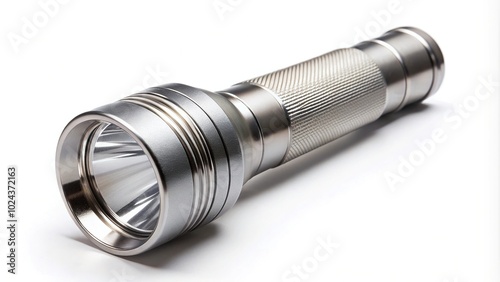 Symmetrical metal flashlight isolated on white background