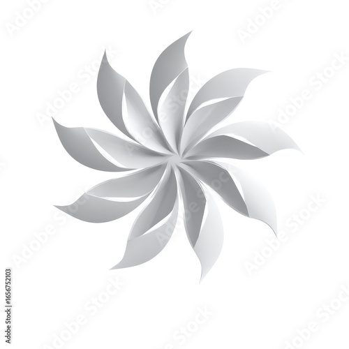 Symmetrical, silver, radiating, starburst design. Complex, layered, floral motif