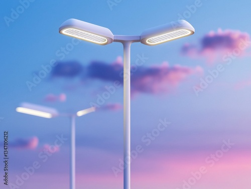 Symmetrical Streetlights Against a Colorful Dusk Sky