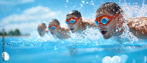 Synchronized swimmers gracefully perform mid-performance outdoors