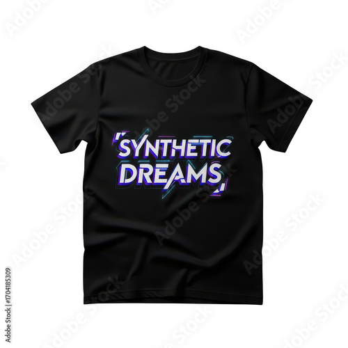 Synthetic dreams t-shirt graphic design with bold futuristic typography and subtle gradient effects transparent background