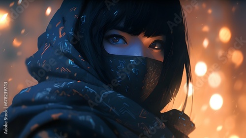 Synthwave anime manga girl, lofi bacground wallpaper design