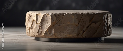 Table Stone podium for display product. Background for cosmetic product branding, identity and packaging inspiration, rear view, wide angle shot