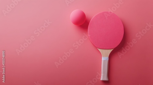 Table tennis racket and ball on pink background showcasing sports equipment and playful competition theme