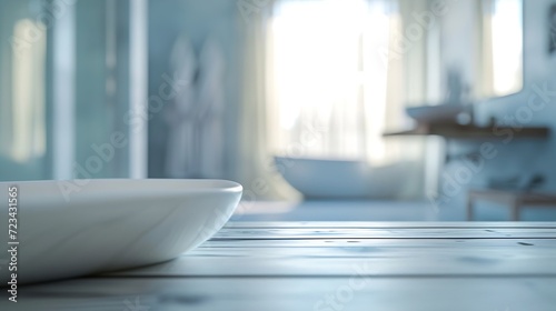Table Top And Blur Bathroom Of The Background : Generative AI