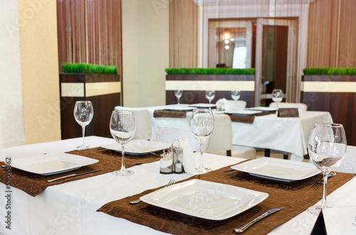 Tables set for meal