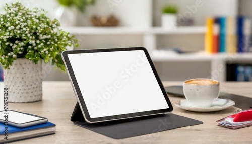 Tablet held by Woman in an Office - Mockup for Application or Web Design - Template for Presentation of Graphic Design - Corporate Representation at Consumers