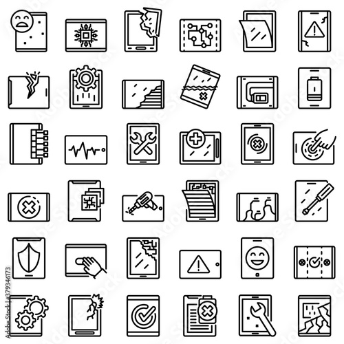 Tablet repair icons set. Outline set of tablet repair vector icons for web design isolated on white background