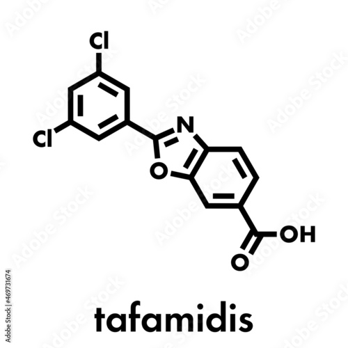 Tafamidis familial amyloid polyneuropathy (FAP) drug molecule. Skeletal formula.