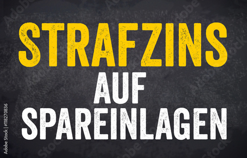 Tafel Kreidetafel Schild mit Strafzins auf Spareinlagen