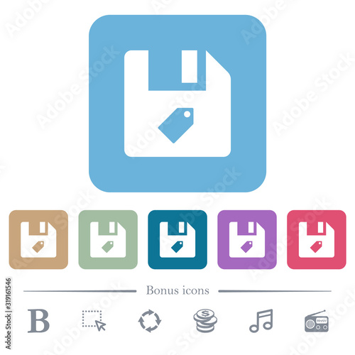 Tag file flat icons on color rounded square backgrounds