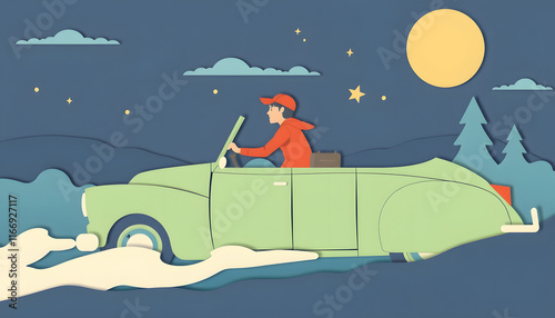 Tagging along for the ride, flat papercut style. isolated with white highlights