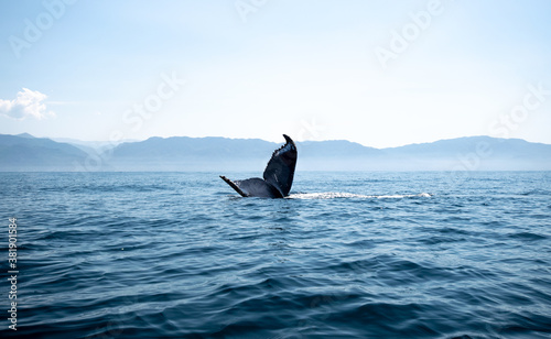 Tail fin of a humpback whale above surface of the ocean. Pacific ocean, Puerto Vallarta. Jal. México.