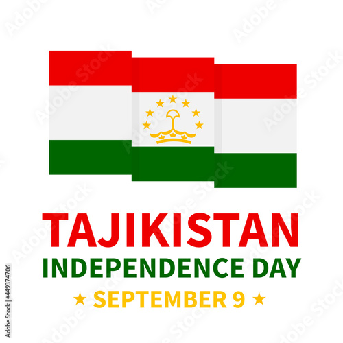 Tajikistan Independence Day lettering with flag. National holiday celebrate on September 9. Vector template for typography poster, banner, flyer, sticker, greeting card, etc.
