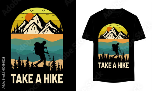 Take a hike, Hiking T-shirt Design. Hiking typography vector t-shirt design, climbing t-shirt, graphic element, vintage artwork, illustration.