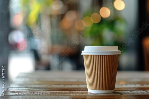 Take away paper cup on a cafe table. AI generative