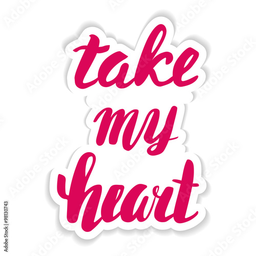 Take my heart. Hand calligraphy. Sticker Valentine's Day.
