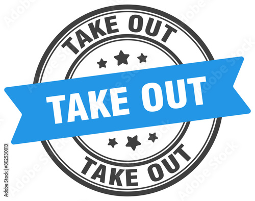take out stamp. take out label on transparent background. round sign