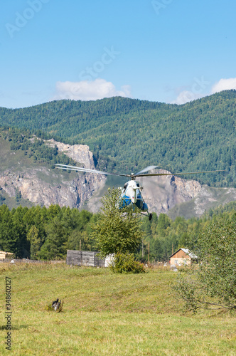 takeoff and landing helicopter in the mountains