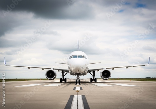 Takeoff Event, Airplane, Airport, Photograph, Cloudy Sky, Front View, Aviation Technology