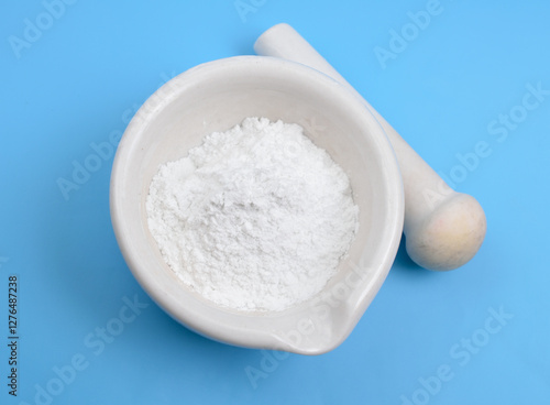 Talc powder on blue background