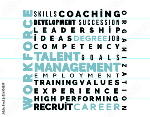Talent Management word cloud template. Business concept background. Green and black text on a white background