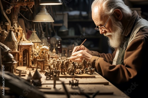 Talented Skilled craftsman working with wood. Wood work occupation male carpentry. Generate Ai