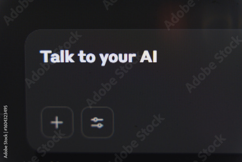 Talk to your AI prompt displayed on a dark digital interface panel with plus and settings icons representing tool options