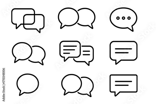 Talking and dialogue speech bubble line icon collection, chat message conversation symbols, UI and web design elements, communication, social media, apps, advertising, cartoon vector illustration