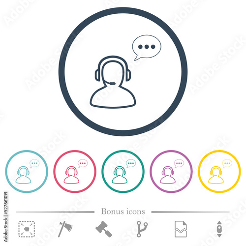 Talking operator active outline flat color icons in round outlines