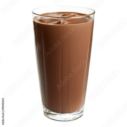 Tall glass of chocolate milk with a rich, indulgent color. isolated on transparency background