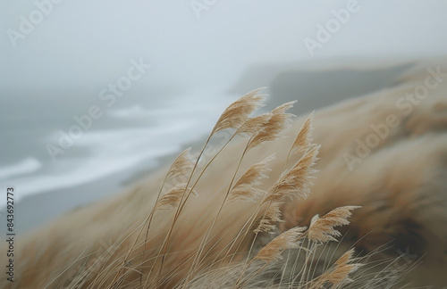 Tall Grasses Swaying in the Wind by the Sea