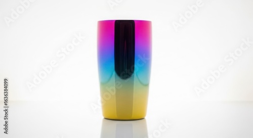 Tall iridescent tumbler with a rainbow gradient on a white background