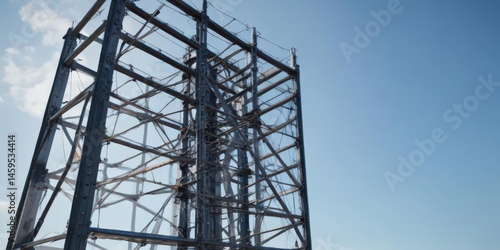 Tall metal structure with insulators against a blue sky , metal, support, energy industry