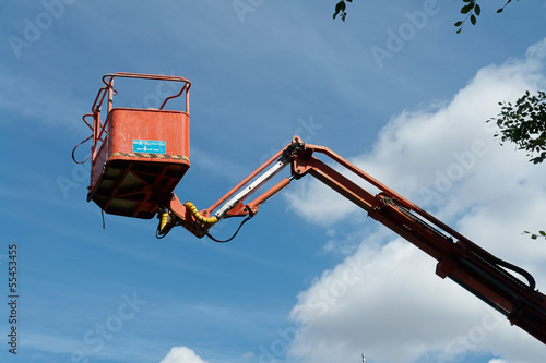 Tall mobile crane with sky background