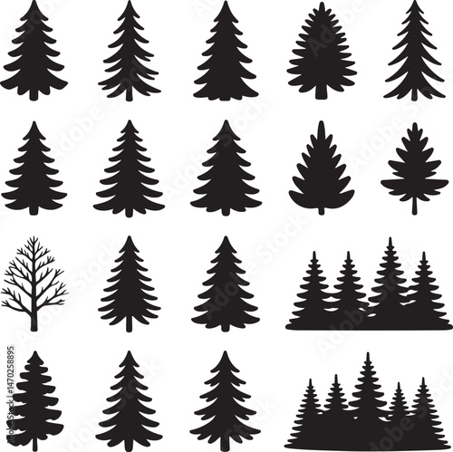Tall Pine Tree in Forest Silhouette Lone Pine on Mountain Vector Scene Rustic Pine Tree Silhouette Design Minimal Evergreen Tree Vector Pine Tree Line Art in Nature Setting
