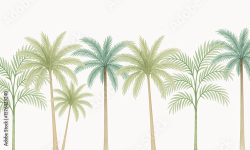 Tall Tropical Palms – Watercolor Jungle Trees Wall Mural in Soft Greens