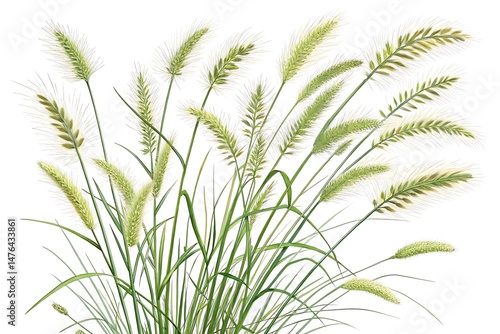 Tall Wild Grass Cluster with Feathery Seed Heads on White Background – Minimalism