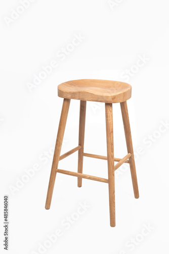 tall wooden bar stool isolated on white background. Ash wood stool