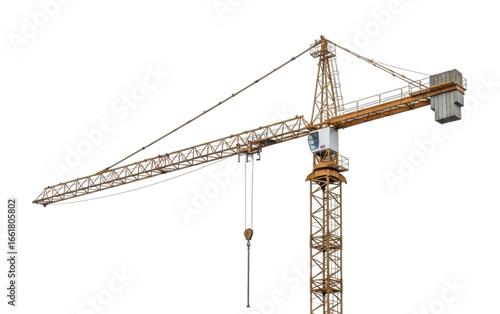 Tall Yellow Construction Tower Crane cutout isolated on transparent bg, png