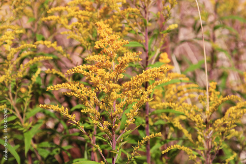 Tall yellow flowers swaying in the wind create a bright accent among the green grass, reflecting the beauty of a summer field.