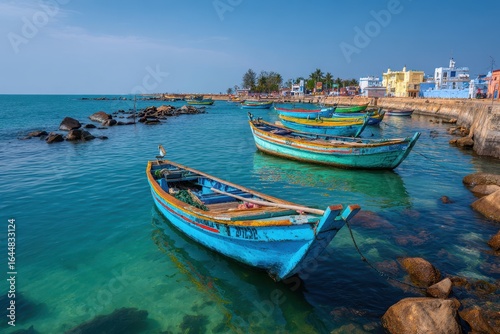 Tamilnadu Tourism. Group of Fishing Boats on Coastal Harbour in Thengapattanam, Kanyakumari District