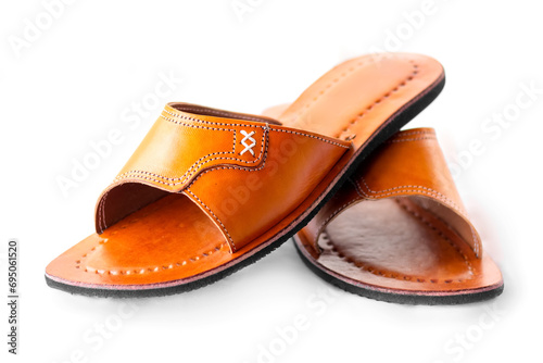 Tan leather sandals, leather sandals for women isolated on white background
