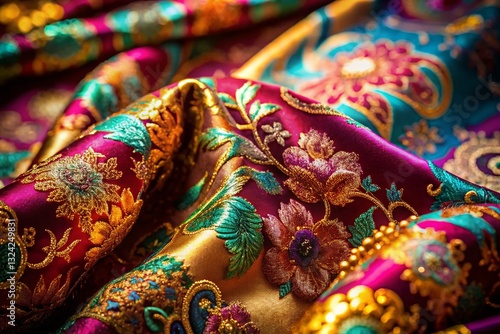 Tang Dynasty Silk Brocade, Rich Colors & Intricate Details - Candid Stock Photo
