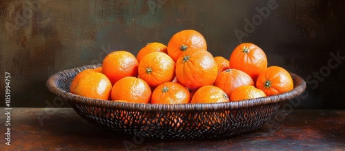 Tangerines In A Dark Brown Woven Bowl