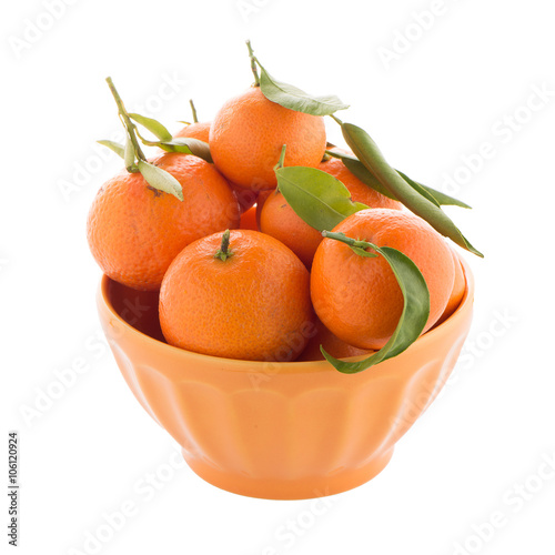 Tangerines on ceramic orange bowl
